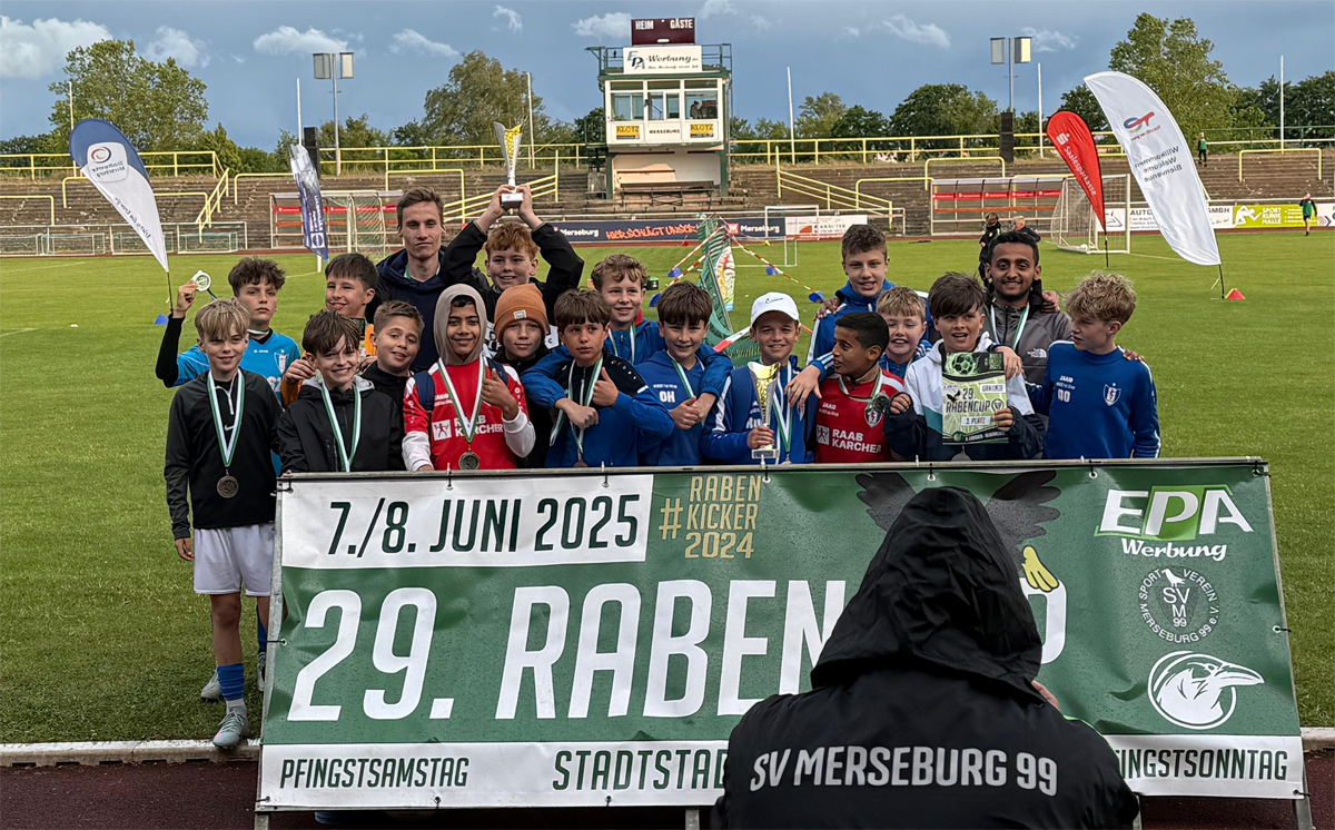 Die D-Jugend war mit zwei Teams beim Rabencup des SV Merseburg vertreten. Team 1 bekam Unterstützung durch zwei D1- und E1-Spieler, während Team 2 ausschließlich mit D2-Spielern spielte. Team 1 verpasste trotz ansehnlichen Fußballs und 10 Punkten nur aufgrund der schlechteren Tordifferenz die Goldrunde. In der Silberrunde wurde das Viertelfinale gewonnen. Endstation war im Halbfinale leider im 9m-Schießen gegen Hertha Zehlendorf. Team 2 absolvierte die Vorrunde etwas holpriger, konnte sich aber ebenfalls in die Silberrunde retten. Dort erreichte man ebenfalls das Halbfinale und blieb gegen den SV Merseburg 99 mit 1:0 erfolgreich. Erst im Finale war Turbine unterlegen und sicherte sich die Silbermedaille. Positiv und bemerkenswert war über das gesamte Turnier die gegenseitige Unterstützung beider Mannschaften.