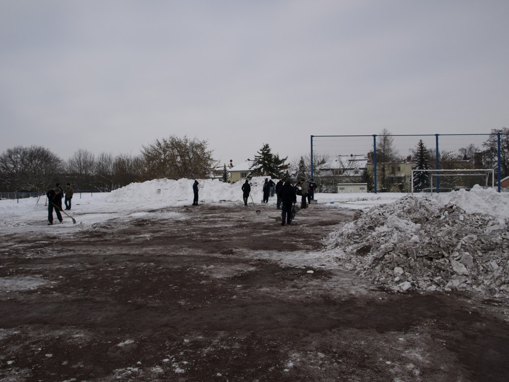 Damit wenigstens ein wenig trainiert werden konnte, legten Spieler und Trainer aller Männerteams am 3.Januar 2010 mit Spaten, Spitzhacken und Schubkarren bewaffnet Hand an, um Schnee und Eisplatten vom Hartplatz zu entfernen. Immerhin ein Minispielfeld konnte so freigeräumt werden. Nicht überliefert ist, ob es diese Aktion war, die letztendlich zum Klassenerhalt für T1 und zum Aufstieg in die Stadtoberliga für T2 beitrug. Es sollte auch noch bis zum 20.März dauern, ehe der Felsen wieder bespielbar war und der SV Höhnstedt im Kellerduell mit 2:0 besiegt werden konnte. Was folgte, war eine fast beispiellose Aufholjagd bis auf den 4.Tabellenplatz. Die 2.Mannschaft musste sich sogar noch bis zum 27.April gedulden, um beim 2:1-Sieg gegen Einheit II erstmals zu Hause eingreifen zu können! T3 besiegte bereits am 27.März den VfL 96 IV mit 3:0.