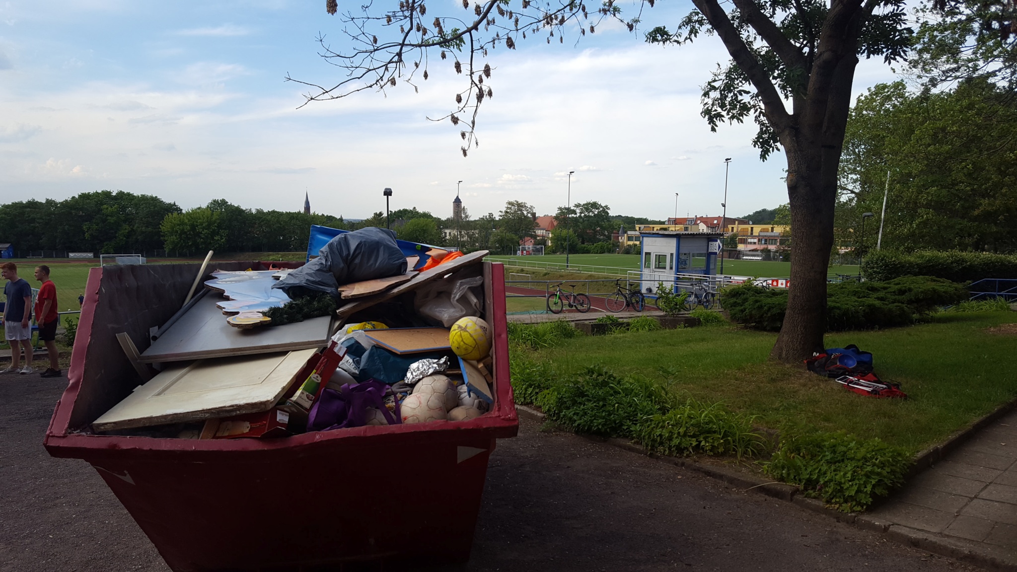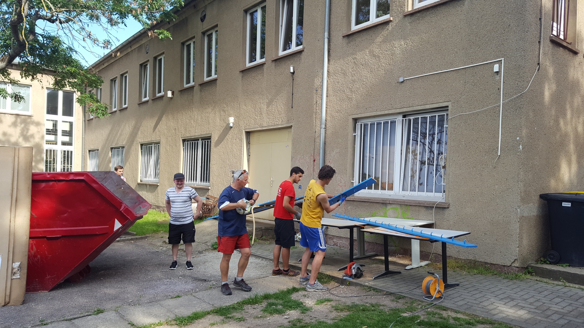 Am Montag hat mit dem Rückbau der Kabineneinrichtung die Renovierung des Traktes begonnen. Bereits am heutigen Mittwoch konnte somit die Metallbaufirma mit ihren Arbeiten beginnen. Die Spieler unserer Männermannschaften räumten, entrümpelten, demontierten am Montagabend und konnten gleich die Waschmaschinen im neuen Raum anschließen. Ein großes Dankeschön an alle freiwilligen Helfer! Vor allem danken wir auch dem GLOBUS-Markt in Halle-Bruckdorf und der Firma AIB Bechstein für ihre Unterstützung.