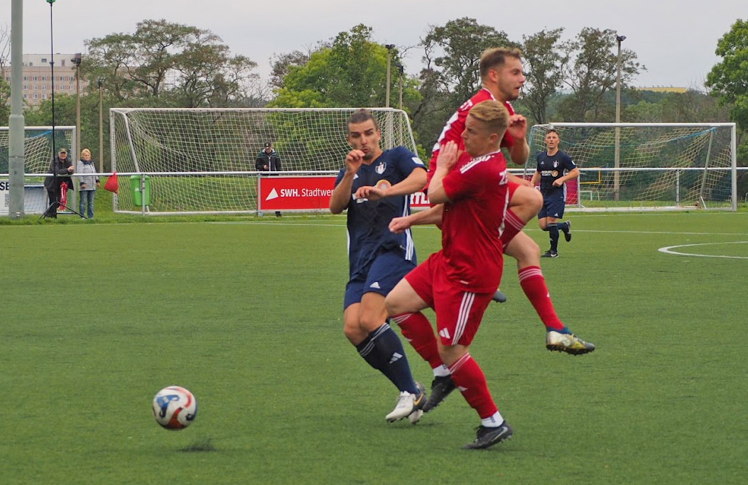 In der 90.Minute schien alles auf einen Fortbestand der seit 46 Jahren andauernden Sieglosigkeit im Naumburger Stadion hinauszulaufen. Dann wurde Dominik Zech in einer dramatischen Schlussphase im Strafraum "gefällt" und Musti Amari schob vom Punkt die Kugel zum 2:1-Siegtreffer beim SC Naumburg ein. Erst drei Minuten zuvor rettete Luca Bergien, der beide Stammkeeper zwischen den Pfosten vertrat, mit starkem Reflex auf der Linie das 1:1 für die Felsenjungs.