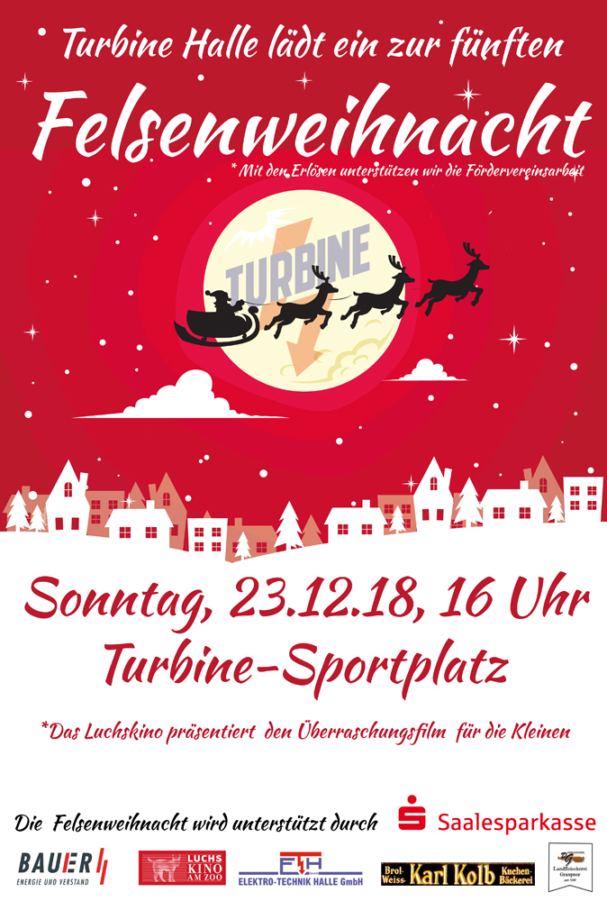 Kaum zu glauben, aber wahr. Bereits zum fünften Mal jährt sich in diesem Jahr unsere Felsenweihnacht. Was 2014 als Initialzündung für das Kunstrasenprojekt begann, ist langsam zur Tradition im Giebichensteinviertel geworden. Mittlerweile haben wir es geschafft, 'Das Projekt' erfolgreich zu Ende zu führen. Ein Grund mehr, am 23. Dezember ab 16 Uhr bei vorweihnachtlicher Stimmung am Felsen vorbeizuschauen.