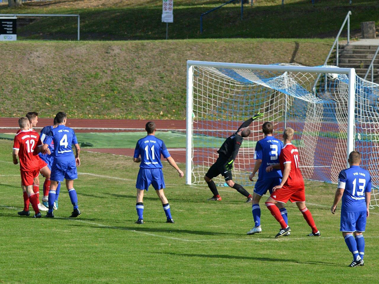 Janos Körtge lässt den Ball zum 1:0 für Turbine gegen Sangerhausen im Netz zappeln (Foto: B.Mandel)