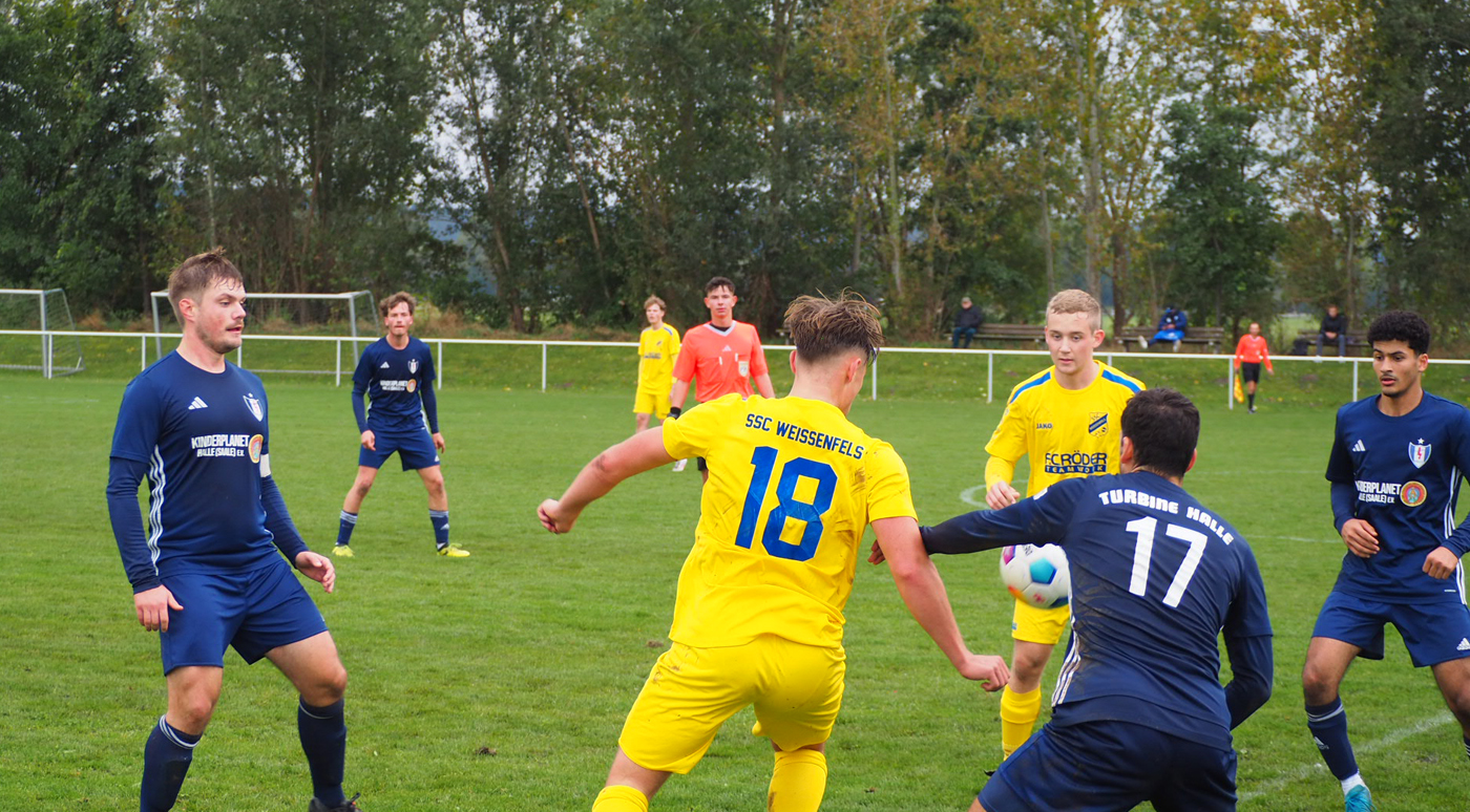 Mission erfüllt! Im Duell der Saaleanlieger nimmt Turbine drei wichtige Punkte mit an Bord und schippert mit einem 2:1-Sieg unter Deck zurück zum Felsen. Bevor der Sportplatz in Uichteritz aber geentert werden konnte, war bei der 2.Mannschaft des SSC Weißenfels ein sehr hartes Stück Arbeit nötig. Die junge Mannschaft der Gastgeber spielte vor allem in der ersten halben Stunde überhaupt nicht wie ein Tabellenvorletzter.