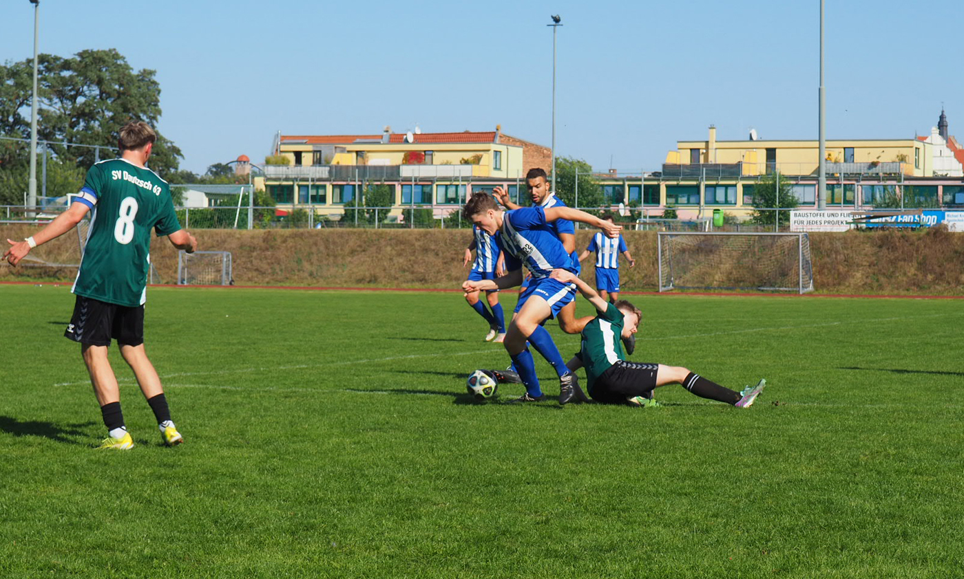 Nach der fast schon traditionellen Auswärtsniederlage beim Kanenaer SV zeigte unsere 2.Mannschaft im Spiel gegen den SV Dautzsch eine überzeugende 180-Grad-Wendung. Von Anfang an erzeugte T2 Druck und ließ bis zum Abpfiff nicht nach. Das junge Gästeteam hatte in dieser Partie keine echte Torchance und kam zu zwei Torabschlüssen. Im Gegensatz zur anderen Seite. Gregor Zahn, Lorenz Palowski und Ian Kallen schlossen sehenswerte Angriffe zur 3:0-Führung ab.
